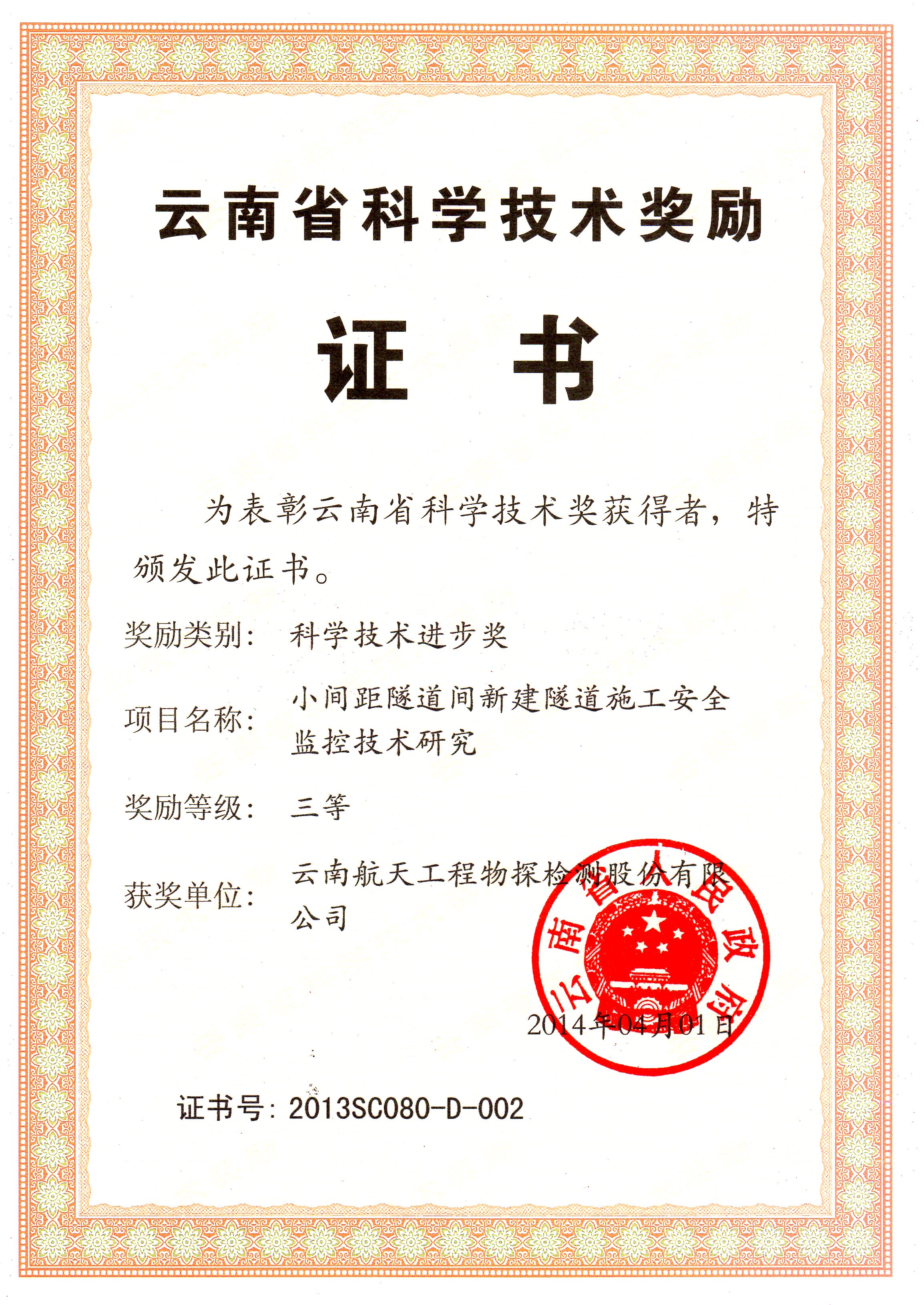 云南省科技進(jìn)步三等獎